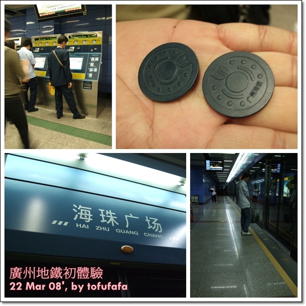 到廣州後知道孤木他們要回香港了,便和Max在萬菱商場及周邊逛逛,在藝景城買了些放衣櫃的香包便坐地下鐵到當晚下榻的酒店,廣州地下鐵路單程票是一個圓形的塑膠錢幣,入閘時先在閘口感應,出閘前再投回機器內(高雄捷運也是用這套系統~)。不知怎的,我腦子裡想著放到感應區,但手卻把單膠幣放到顯示螢幕上,真糗!