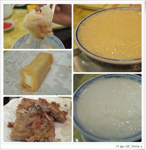 左上:蘿蔔糕,比較普通; 右上:西米雙皮奶,被我們笑稱像青蛙卵;