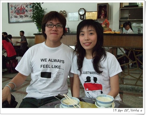 這對小情侶又在穿情侶裝了,這天穿的也很有意思,We always feel like.... just married! So cute,聽說在香港旺角Chic之堡有售。